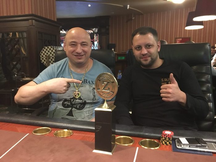 Закончился Турнир 100$ Holdem R/A. Призовой составил 3000$! 17 человек приняло участие! На фото ниже участники хэдзап Валерий Антонович и Турок Михаил, которые приняли решение поделить, но доигрывали до звания чемпиона и обладателя кубка! Им стал Михаил! Наши поздравления!
