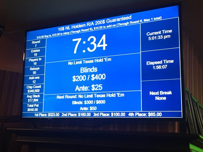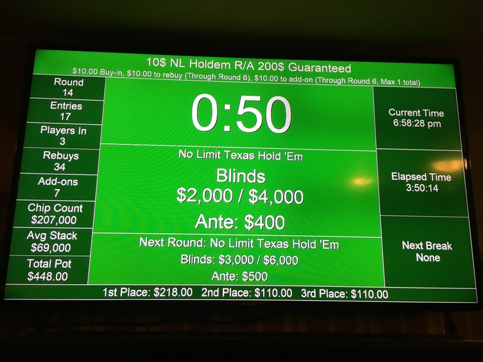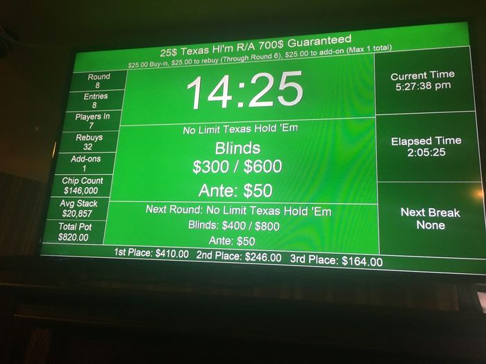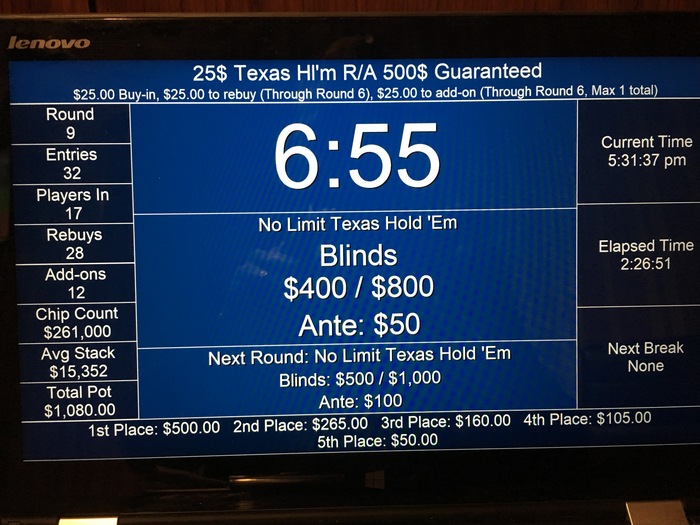 Отличный сегодня выдался турнир 25$ Holdem R/A. 32 участника, из которых 18 человек с первым визитом (а значит стартовый стек им предоставлялся бесплатно!), собрали боле $1К призовых!