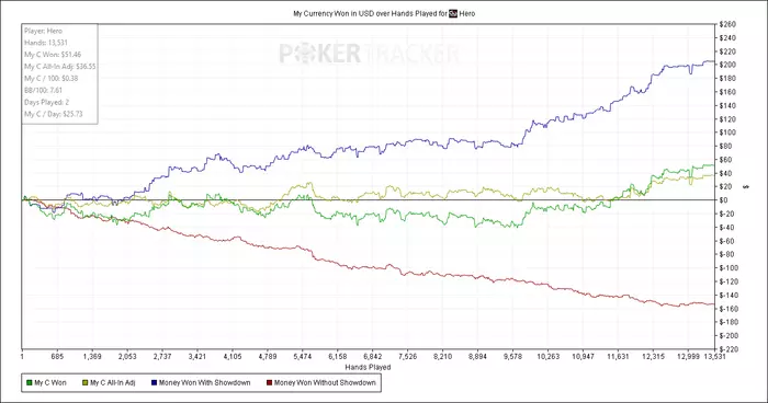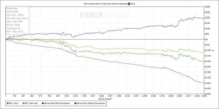 Диспа может и меньше, но никто тут не катает в 10бб очевидно, а при низких винрейтах (а думаю с учетом кол-ва говнарей 20/10 из Азии так оно и есть), диспа все равно будет ебать, куда ты не денься. Вот и получается, что катать на условном нл-2 куда профитнее, либо идти уже на нл-10, но там уже конкуренция за ЛБ и в целом поле посильнее должно быть как мне кажется.