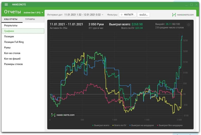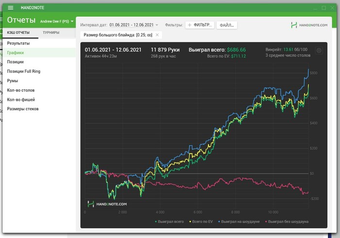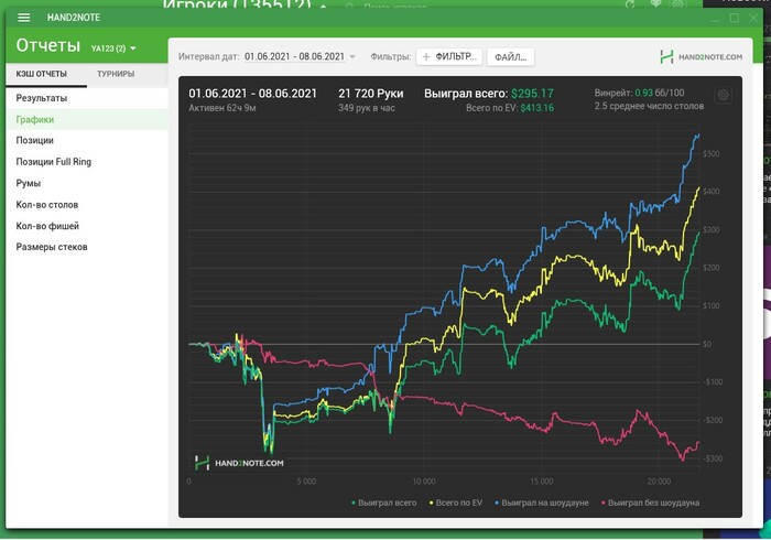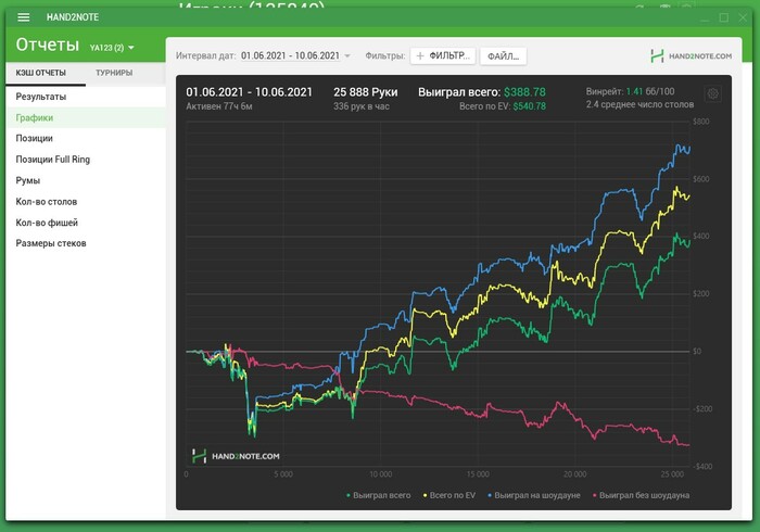 И сыграл вечернюю сессию. Не длинную. По ощущениям выиграл около 100 баксов, решил остановиться на пике) Хоть это и не очень-то рационально.