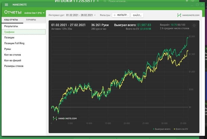 Начал играть с 18 числа, до этого отдыхал от покера, т.к. с Нового Года очень плотно катал. Так что вполне не плохой результат.