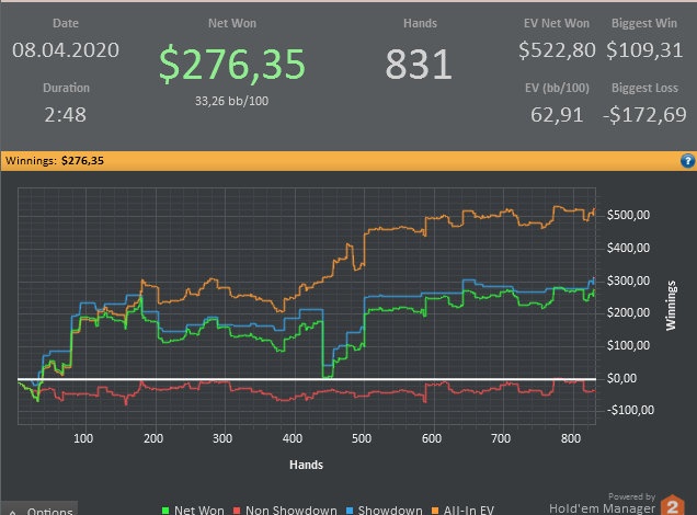 по факту выйграл примерно столько же как EVшка, так как с увеличением фишей за столами, кнопку "cashout" нажимали чаще чем обычно)