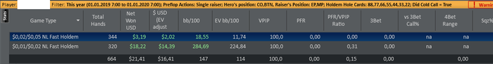 Даже по своей, не большой дистанции, посмотри в фильтрах вообще колд колл вс ранние по типам рук, который по эквити не але