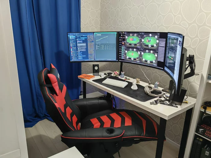 Обновил рабочее место, чтоб прям совсем комфортно было жрать говно за столами. Докупил 3й моник Dell AW3225QF и массажное кресло.