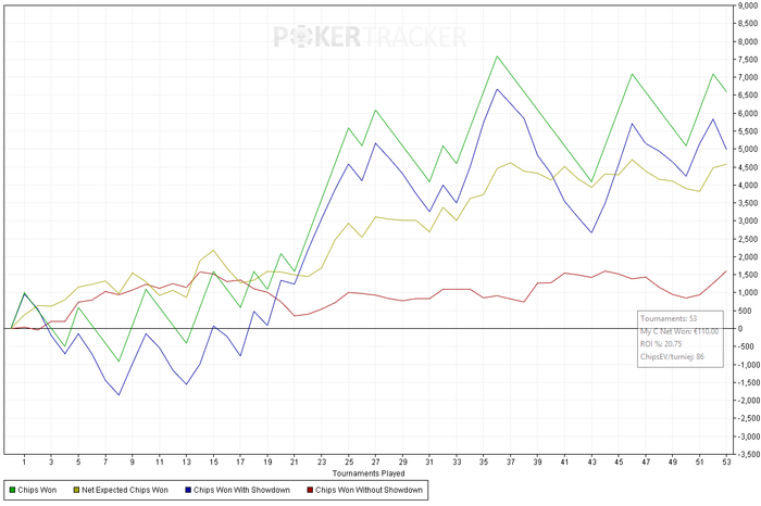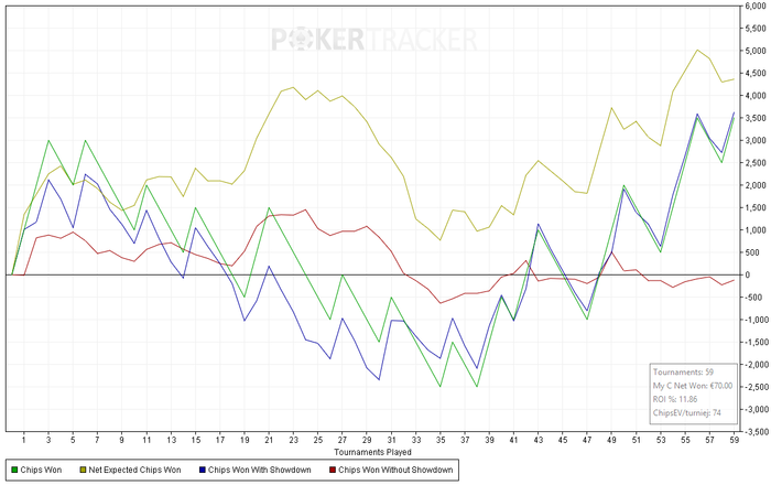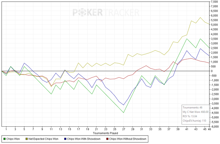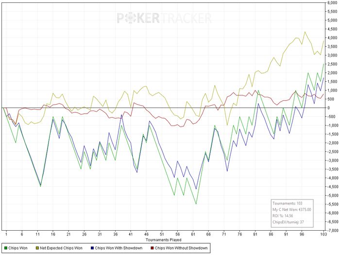 Екатерина, привет! Считаю себя скорее понимающим любителем микролимитов. Знакомство с покером произошло с SNG и MTT, во время учебы в университете проводил бессонные ночи за покерным набором с друзьями в общежитии. Затем перебрался в онлайн, охотился за фрироллами, регистрировал бездепозитные полтинники. Это было еще в 2008 году. Затем перепробовал разные дисциплины, набивал свои шишки в банкролл менеджменте. Ближе к 2012 стал уделять время только MTT ― на выходных загружал 10-15 недорогих турниров на выстрел (график sharkscope). К сожалению, времени свободного становилось все меньше, пришлось искать что-то еще. Тут на помощь и пришли спины, результаты в них значительно лучше.