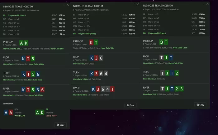 Apofis @ 30.05.24Panda_gerrard, сам ответил на свой вопрос) "мб слишком агрессивно играю или готовые руки переигрываю против натсов?" по раздачам понятно, что не складывается, но ты и сам такое ощущение их как в тильте играл, мог и не проигрывать сток, понятно, что залил бы все равно минус по сессии, но в разы меньше
