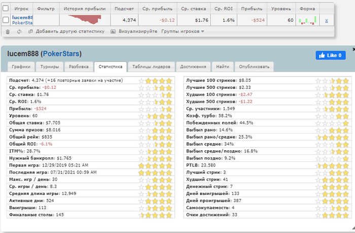 видим реальную картину- как мы играем полные столы. Винрейты отличаются