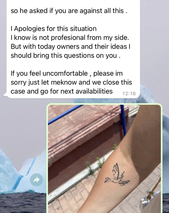 «Мне очень неловко… Хозяин квартиры, итальянец, не поддерживает действия вашей страны. Прежде, чем вы сможете осмотреть его квартиру, напишите, что вы думаете про войну и про Путина».