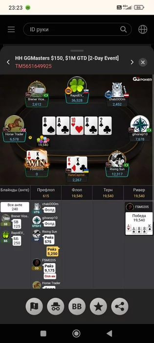 Вот, например, сегодня играл сессию Battle Royale, и дважды дамы у меня ушли в пас префлоп — банально не успел нажать кнопку. Иногда бывают моменты, где я откровенно плохо пихаю, поспешив. Если бы такие ситуации происходили в фонде, конечно, ко мне были бы обоснованные претензии.