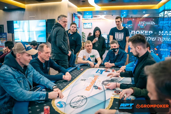 Валерий Фокин проиграл важную раздачу по 233,000 < , израильтянин поймал валета по флопу и удвоился. У Фокина около 350,000.