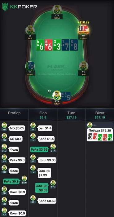 Которые почему-то не проигрывают не какие выставления. Раздача с выше, там до меня он с 33>KK, AT>JJ уебал 3 раза подряд всех за столом, по одной и той же схеме, страдл-рейз-пуш.