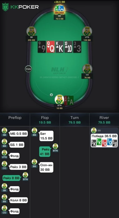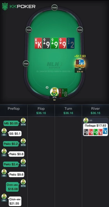 Здесь, не уверен, что хорошо сыграл ривер. Может стоило коллом отбить, мейби получили бы мультиколл по какой-то паре на сб. Не знаю, не знаю. Вроде бы тоже не рег, на бб лютый вип. Экшн вокруг него. Приму критику.