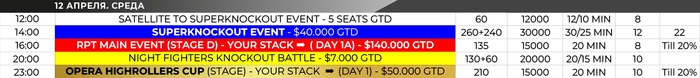 ❗️ Вниманию игроков. Из-за большого наплыва игроков на серию и во избежание очередей, было принято решение отменить утренние сателлиты к RPT Main Event, которые в расписании 14 апреля в 10:00, 15 апреля в 10:00 и 16 апреля в 10:00.