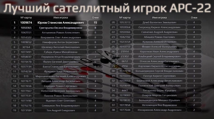 Александр Стародубец стал лучшим игроком серии АРС-22. Он не выиграл ни одного турнира, но попал в зону ИТМ аж в семи турнирах ! Отличный результат ! Вот так, приехав впервые на серию, красиво заявил о себе ! В награду он получает Золотую фишку, весом 40 грамм чистого золота 585 пробы - это эксклюзивная награда, которую можно заработать исключительно на нашей серии ! Искренне позд равляем !