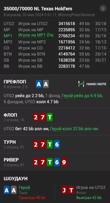 Девчушечка, Дело в том, что у тебя ROI30+ А у меня ROI6% при чём в основном на SNG. Усидчивость....не знаю, есть ли она, вроде спокойно стараюсь играть. Особенно не люблю, когда играю так отлично, а перед финалкой какой нить маньяк щелчок по носу делает не понятно на чём и зачем. 8 часов отсидел и пока и время не вернуть. P.S. Считаю, что если деньги нужны в первую очередь, то нужно играть кеш, если стратегические планы то тут мтт безусловно. Учитывая проблему с ботами, становится ясно, что будущее за турнирами. Но нужно, что то делать с форматом как по мне.