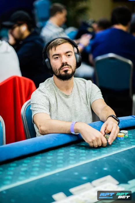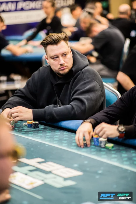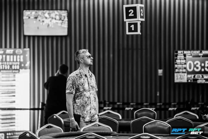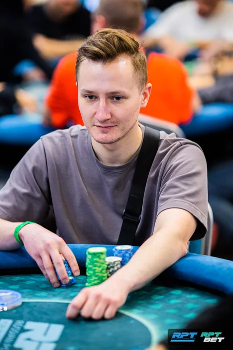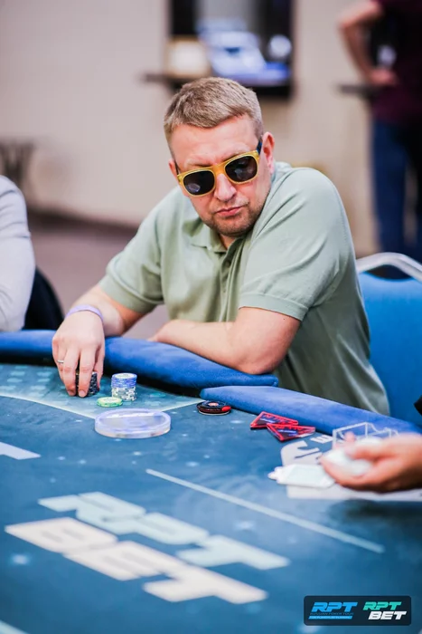Заметила, что Владимир Воронов сидит за тем же столом, но на другом боксе. Он уже успел вылететь и вернуться в игру. Выбил его Йохан Кулс: подколлил против сквиза, Владимир проставил в него с на доске .