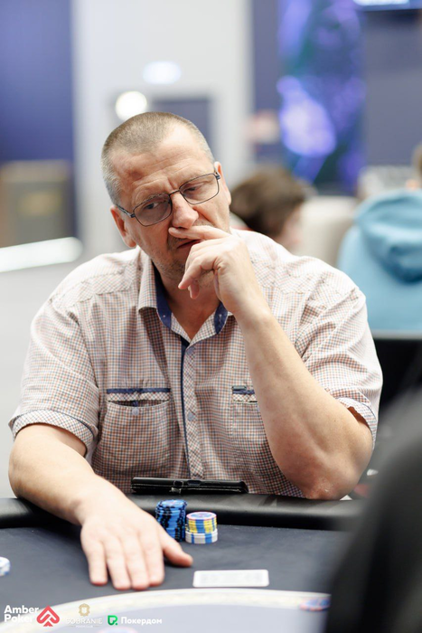Михаил Моисеев с первой, не смотря в карты, олл-ин 35к, на СО Наиль Аберхаев (220к) репуш с , у Михаила