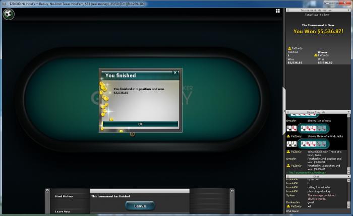 Абсолютно не по бр. В тот вечер играл немного не трезвым, но к top30 все как рукой сняло. Катаю MTT и sng от 5-22$. 1к выиграл в юбилейный сандей на старзах.