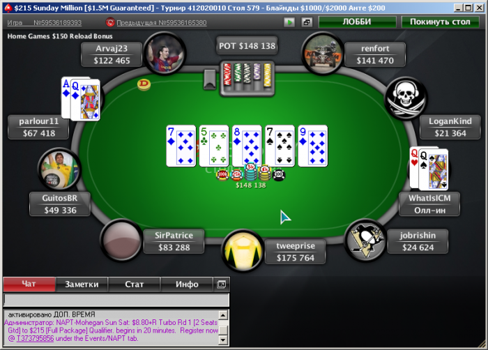 PokerStars, $2000/4000 Hold'em Tournament, 8 Players