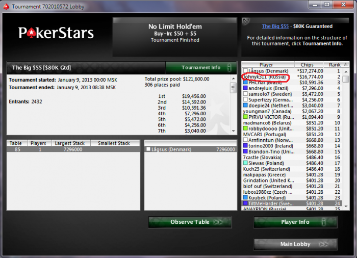 кстати в раннем итм проиграл большую раздачу AQ<AT, остался огрызок и вот как началось мое восхождение)