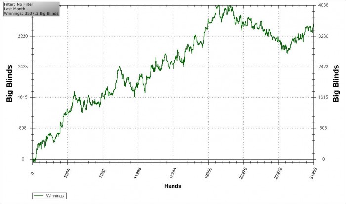 За первые 10 дней отыграл 25к рук, за оставшиеся - все остальное.