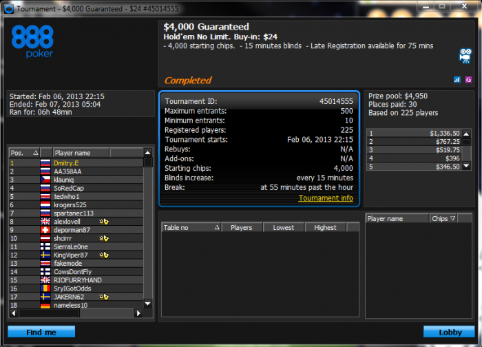 еще на 888 6ое ,татане 4ое и пару предфиналок