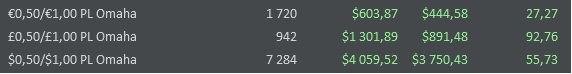 €1/€2 Pot Limit Omaha Hi 2 Players Hand Conversion Powered by weaktight.com