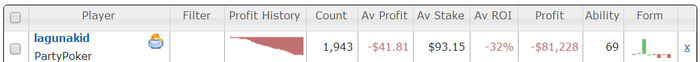 1. Poker Stars, $0.44 Buy-in (50/100 blinds) No Limit Hold'em Tournament, 7 Players