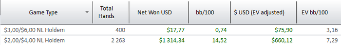 Ну а что удивляться, 35к рук даже на 6 столах оооочень мало. Noel, у тебя еще какой-то заработок или только покер? Если только покер то уже пора задуматься. Дистанция смешная. Без обид, думаю и сам это понимаешь.