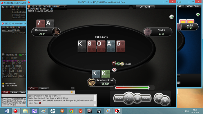 И все таки существует гатшот+фд в рейнже чекрейза на досках АКQw. Опп какой то новый рег positivethnking, с сомнительной игрой в поздней, но пока ему очень хорошо заходит против меня и он прыгает и почти всегда выигрывает. Плохой колл от меня на терне, надо было пушить не стесняясь
