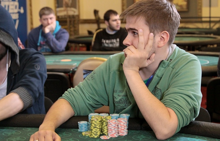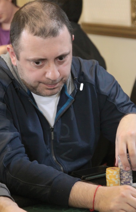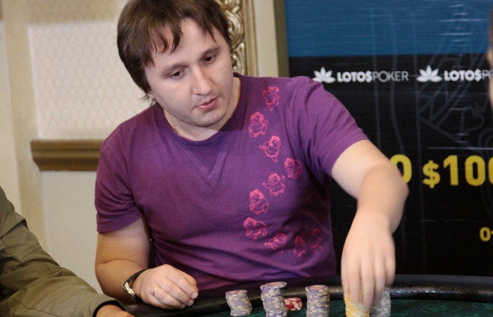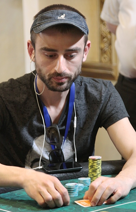 Осталось трое, причем Петриченко оказался большим чиплидером. В одной из первых раздач его на 373К потрепал Курсевич, который поставил олл-ин на и получил колл от . Как оказалось, Артем был далеко позади Вадима: .
