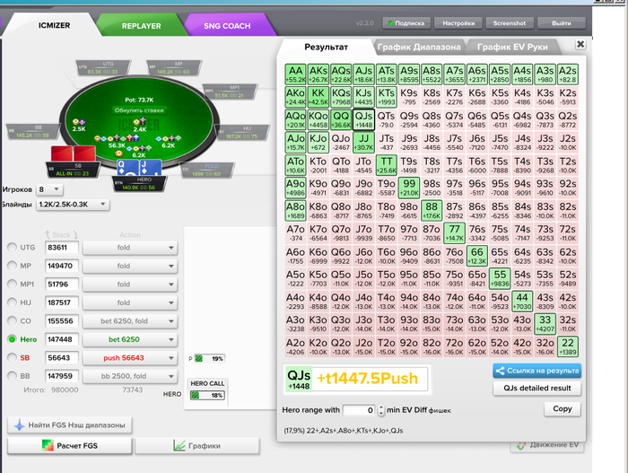 Mefist666, против тайтового рейза и без сильных ликов в постфлопе я такой кол в плюс вывести не смогу.