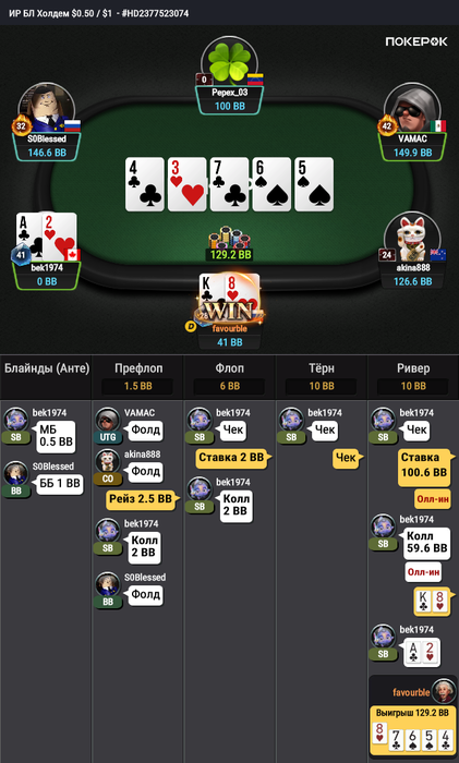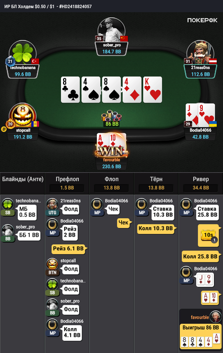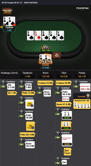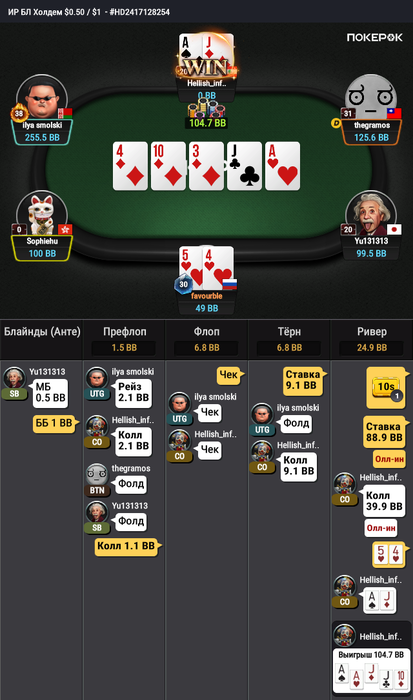 Тут мне велью придумать крайне сложно он видимо понадеялся что я в мердж АК или ФД какое то так сыграл. На будущее буду про него знать что ривер он готов вскрывать и надо меньше блефовать.