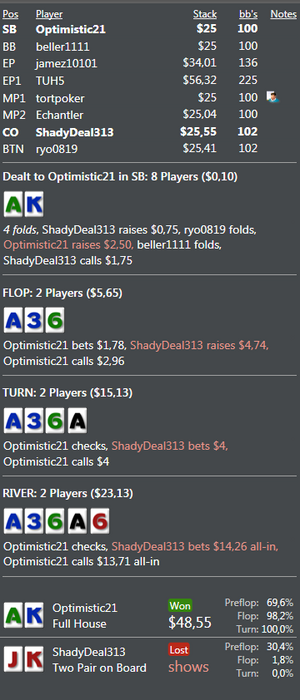Я вот после 6 макса до сих пор не перестроился , там хоть иногда на ШД показывали какие-то блефы и я был доволен как слон когда откалывал чувака , тут я наоткалывался уже баксов на 500 и чёто сука блефов то не увидел до сих пор.