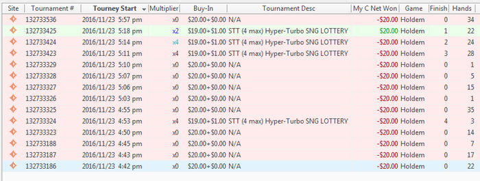 Всем привет. Начал катать SNG Hero на Party и столкнулся с какой-то дичью. Рандомные турниры трекаются через жопу, не определяется формат, не считается рейк, призовые, множитель х0... Соответственно, график по бабкам просто летит вниз. А недавно заметил, что и руки из этих турниров(а может и из всех) трекаются не все. Столы заранее не закрываю. Хад работает за всеми столами. Заранее спасибо.