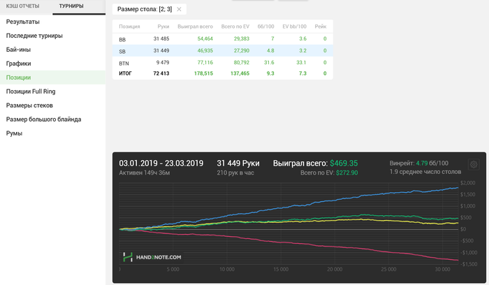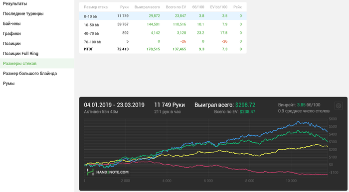 И вот все таки хочется понять туда ли я катаю. По правильному было бы наверно скинуть историю турниров какому нибудь тренеру. Чтобы проанализировал и сказал мне что там по ЕВ, по фишкам. Может все норм и это просто диспа. А может там и по фишкам все печально. Но я понимаю, что за бесплатно этим заниматься ни кому не интересно. Это понятно, иллюзий нет. А так как БРа нет, значит надо попытаться как то разобраться в этих прогах самому.