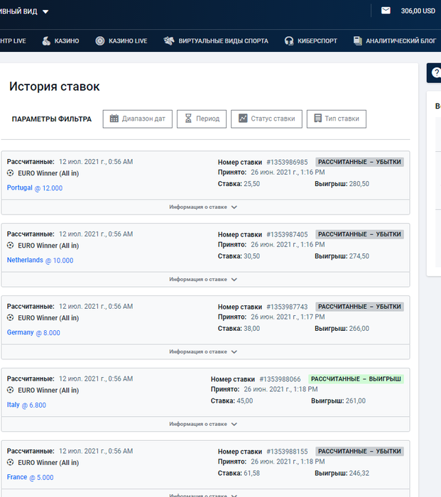 итого 324$ мой чистый профит со ставок, начиная с мая, после развязки.
