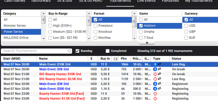partypoker, Вот очень много народу жалуется что мало фулл ринг турниров и много 6максов, полностью согласен что 8макс интереснее для большинства. Но почему я ни разу не видел в лобби хедз ап турниры? Не планируете ли их добавить в сетку?