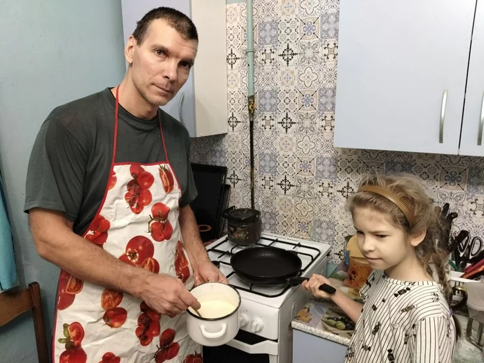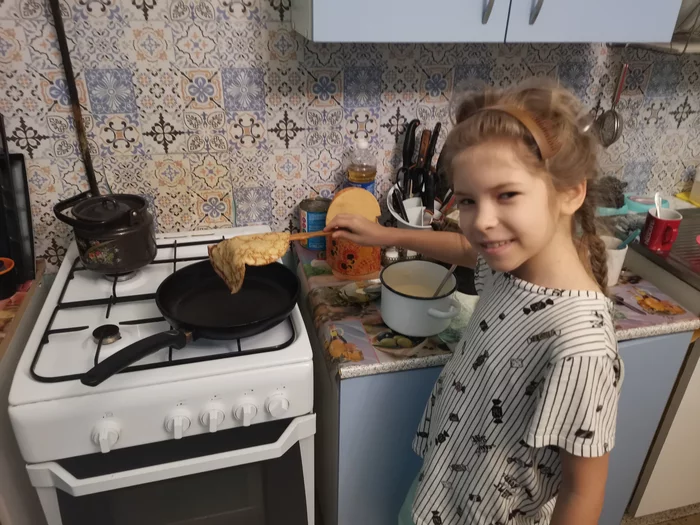 Потом думал будем делать вместе блины-в итоге 10 минут мне помогли и убежали бросив одного)