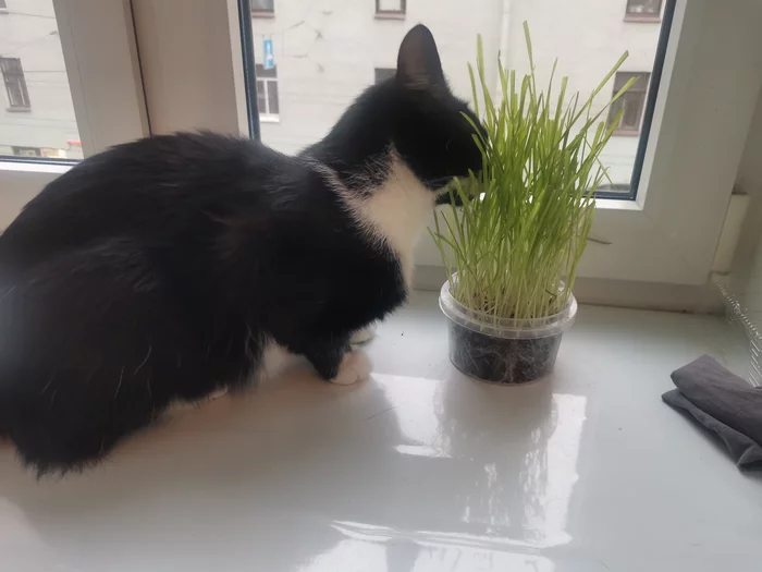 Янычу выросла травка на окне-по 10 раз на дню ходит и грызёт!