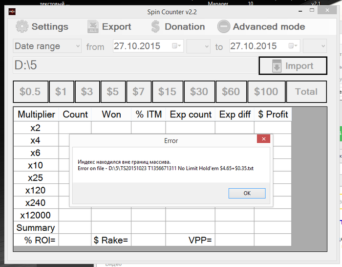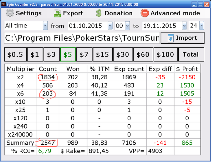 День добрый!Только сегодня увидел возможность установки на ХР и сразу же установил Spin Counter. Но при сверке с вражеской программой обнаружил пропажу трех турниров.Путь и даты выставлены идентичные.В чём может быть проблема,как найти и/или исправить данные турниры?