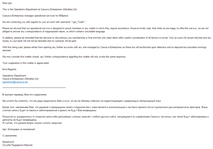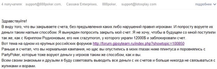 Почему бы не собраться всем пострадавшим от действий Кассавы и подать иск в суд.Предварительно поговорив с юристами с опытом в таких(онлайн) делах.И ессна подробно освещать ход событий на всех крупных ресурсах,посвященных покеру.