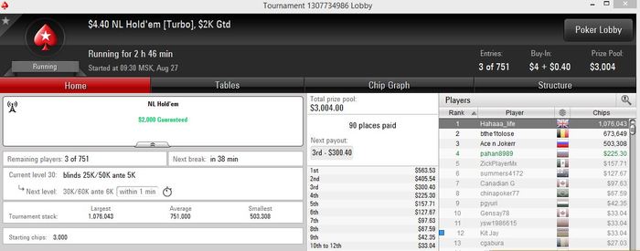 сегодня пришлось подключать турбины и вышло не плохо(люди совсем не умеют пуш фолд играть) в 4 максе был чипаком в 2 раза по фишкам в итоге 4й(таки турбина..