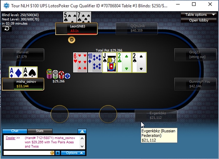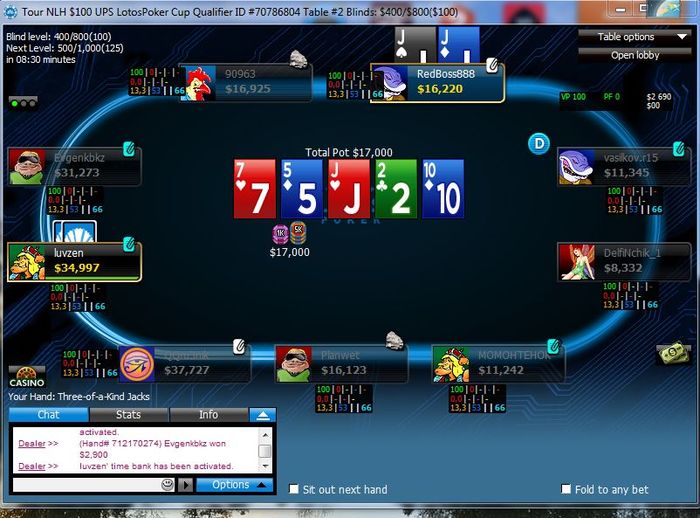 P.S. Уже 10/42. Вагин благополучно удвоился о "DelfiNchik_1", и в следующей раздаче тот вылетел.
