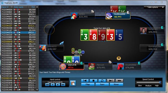 Сумел восстановить свой стек до 33К+ "QQru3nik" - его оказались сильней в олл-ине "RedBoss888": терном - валет, ривером - туз.