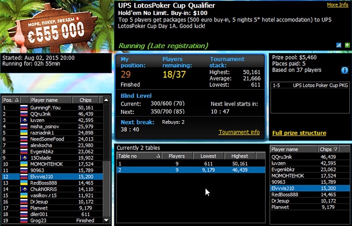 Brioni @ 2.8.2015 Хочу внести ясность,не вылетел а просто меня не запускали в игру,и соответственно почти все блайны сожрали,печально что у такой серьезной серии как UPS такой слабый покер рум