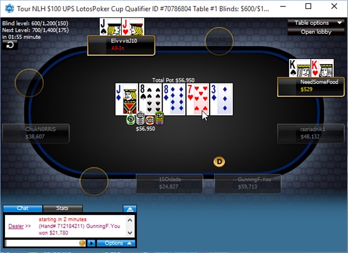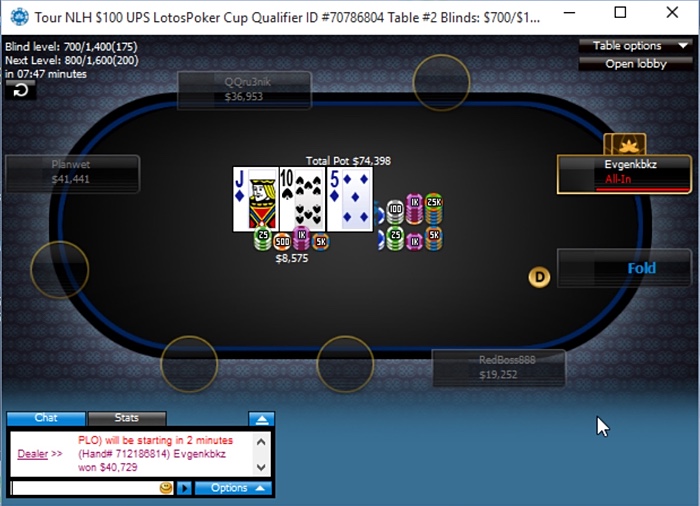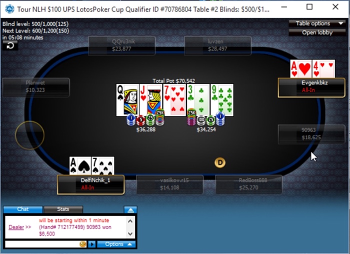 Финалочку UPS Qualifier начали без предисловий - с олл-ина в первой же раздаче: