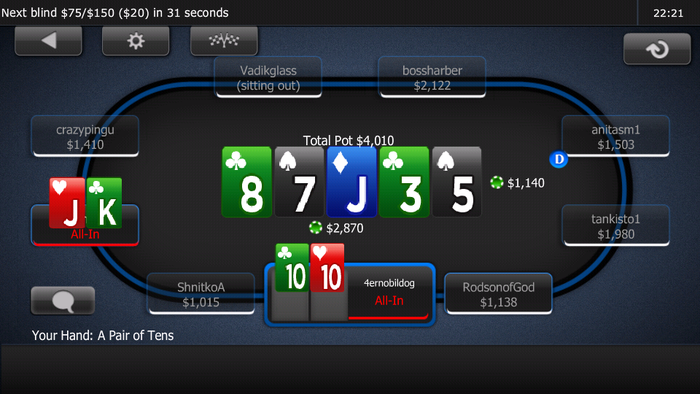 Да все у нас впереди!!! Я только что на предфиналке на фриролле вылетел, сука одна с К10 заколила мои АJ одномастные, на терне у меня были дрова и на флеш и на стрит, но закрылась падла десятка!!!