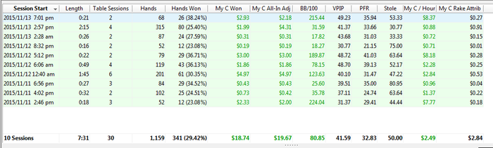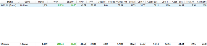 MP: $5.36 - VPIP: 19, PFR: 8, 3B: 0, AF: 2,0, Hands: 36