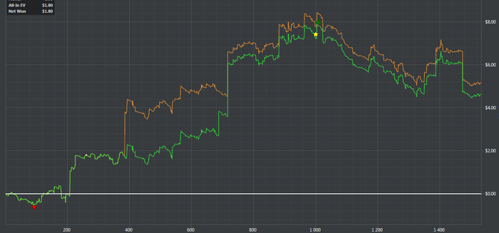 Hero bets $0.77, MP calls $0.77 and is all-in